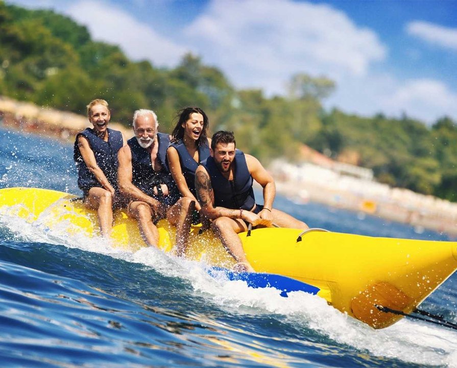 Hold on tight and get ready for a fun-filled adventure on the waves! The Banana Boat Ride is an exciting group activity where you and your friends ride an inflatable banana-shaped boat pulled by a speedboat. Feel the thrill as you bounce, twist, and splash across the water — laughter guaranteed! Perfect for families, friends, and groups looking for some high-energy water fun.